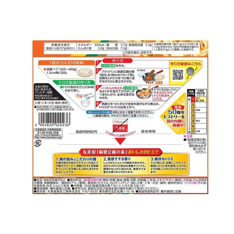 【日本直郵】MARUMIYA 丸美屋 麻婆豆腐醬料 甜口 3人份*2回份