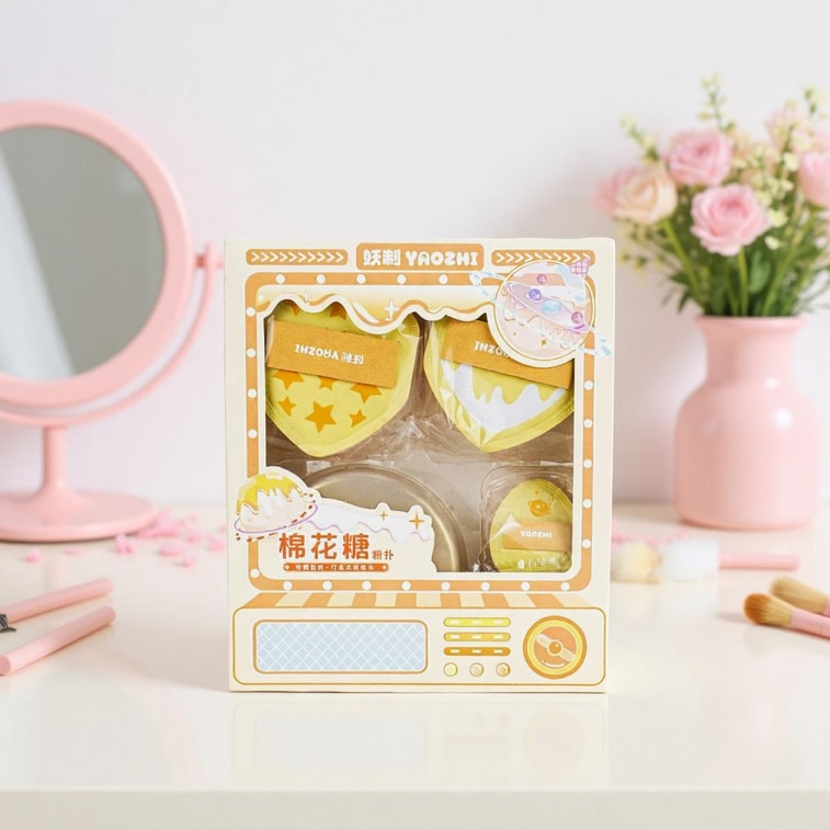 妖制 糯嘰嘰棉花糖粉撲套盒 含大粉撲*2 小號粉撲*1 收納殼*1 乾濕兩用氣墊 不易吃粉