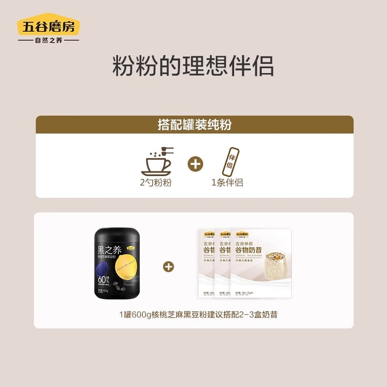 【中國直郵】 五穀磨坊 代餐奶昔高蛋白黑芝麻糊 即食營養早餐食品 飽腹沖飲伴侶 600g