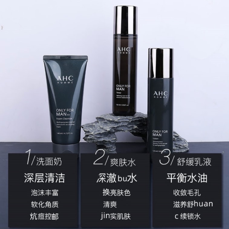 【香港直郵】 韓國 AHC 男士三件組 水120ml+乳120ml+洗面乳140ml 控油保濕補水 清爽不黏膩 提亮膚色 收縮毛孔 剃須後舒緩 懶人必備護膚禮盒