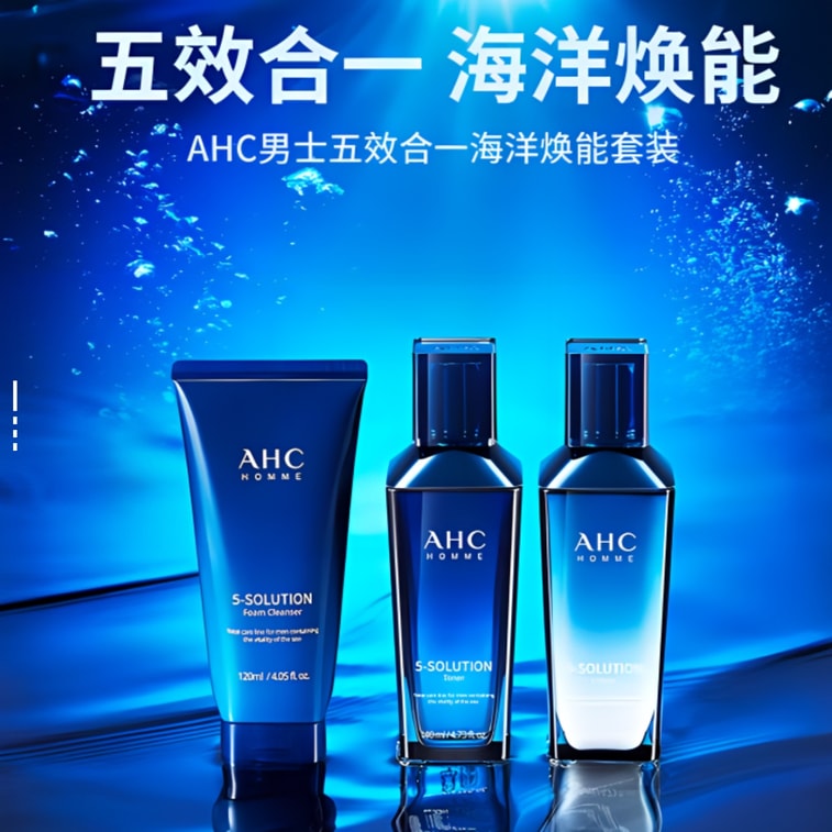【香港直郵】 韓國 AHC 男士海洋煥能護膚套裝 爽膚水140ml+乳液140ml+潔面乳120ml 深層保濕保濕 控油清潔 收縮毛孔 剃須後舒緩 【五效合一】