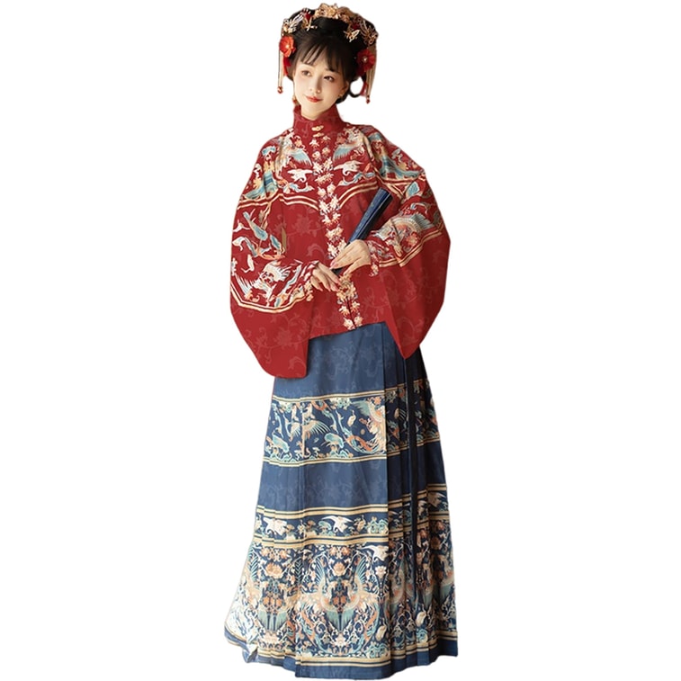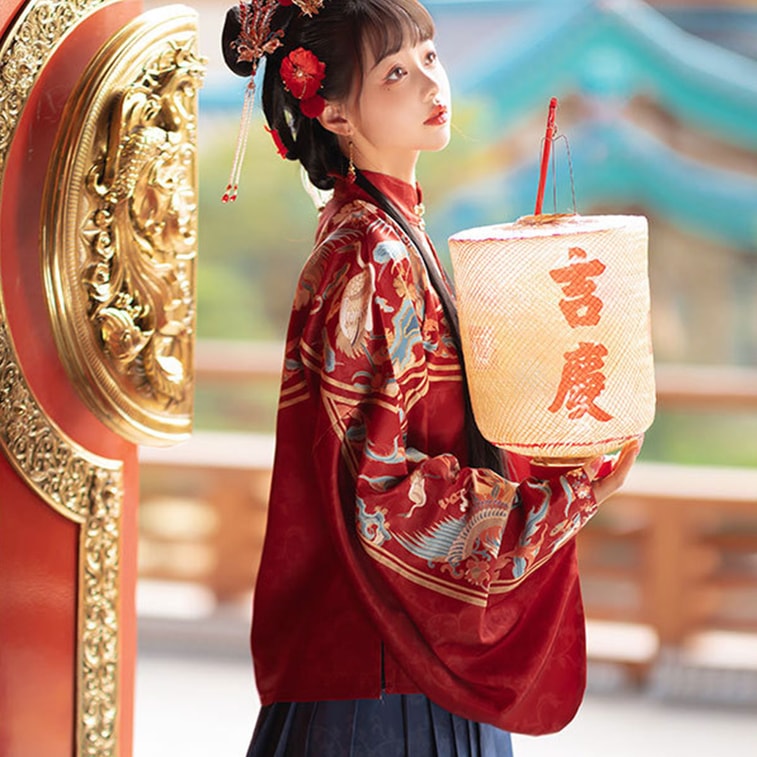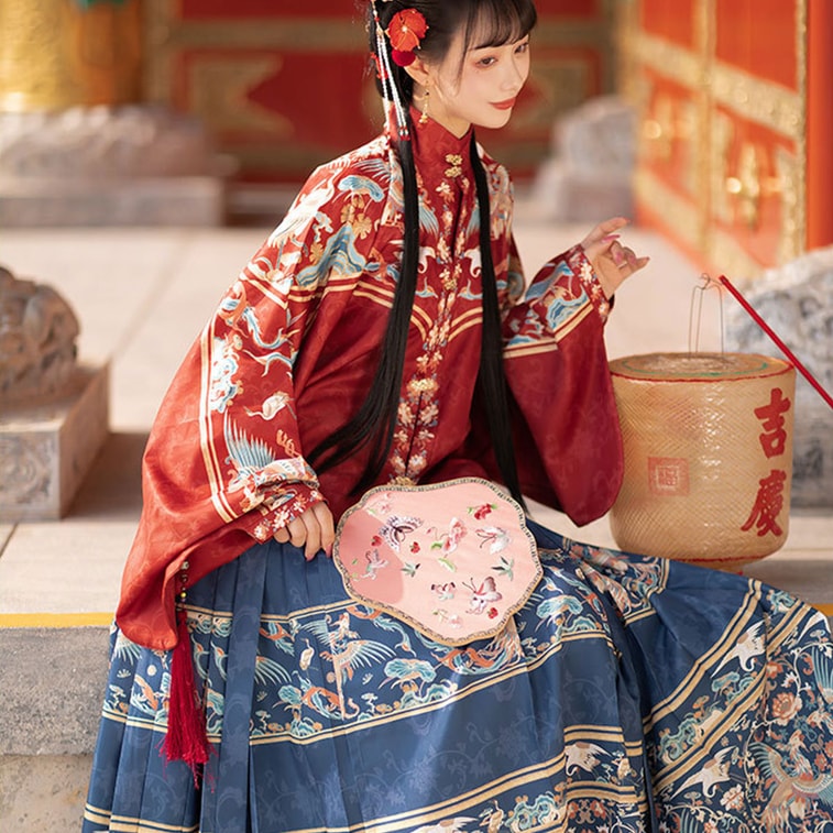 【中國直郵】 HSPM 漢服女明製立領對襟短衫琵琶袖馬面裙 紅色 S