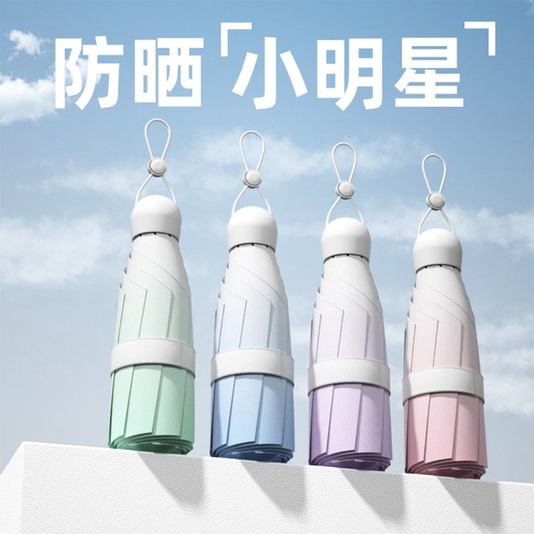 【中國直郵】 HSPM 迷你膠囊太陽傘 口袋便攜 加寬黑膠防曬防紫外線 遮陽晴雨兩用傘 漸變五折F 海鹽藍 1把裝
