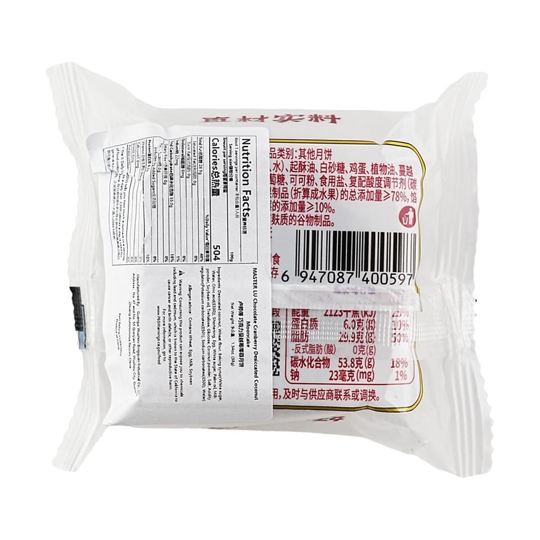 | 口味 | 巧克力蔓越莓椰蓉口味 |