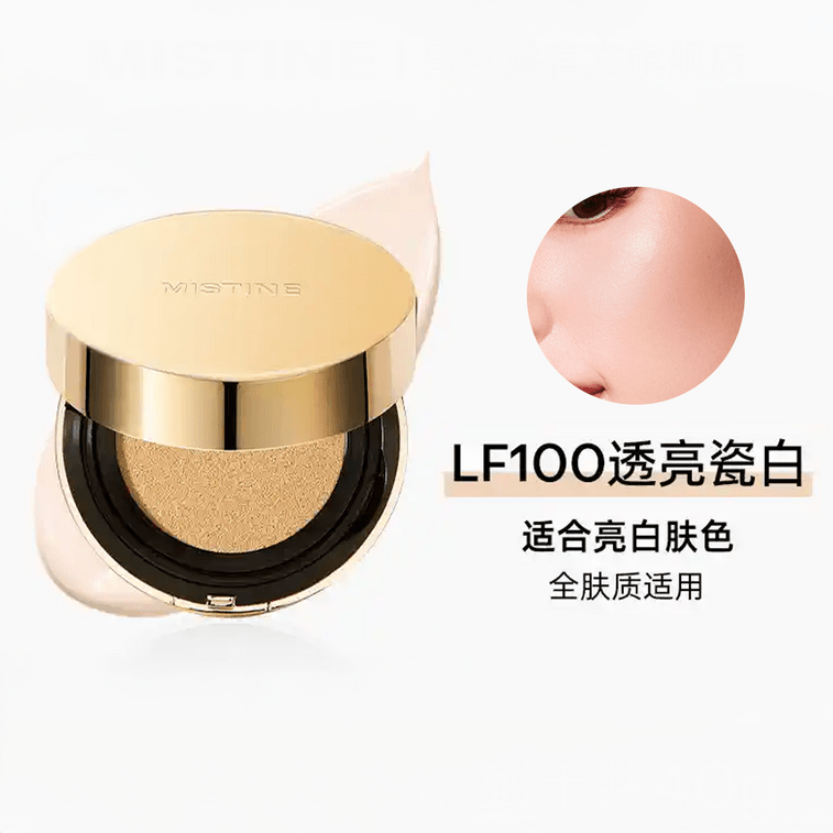 蜜絲婷 泰國MISTINE蜜絲婷 金氣墊 柔絨霧顏氣墊霜 一拍遮瑕 24h巨持妝控油 高遮瑕輕粉感 敏感肌膚可用 #金盒遮瑕款 LF100 透亮瓷白 適合亮白膚色 附贈替換芯 | 亞米