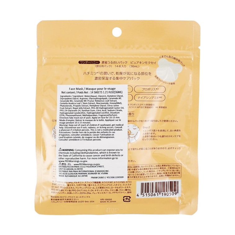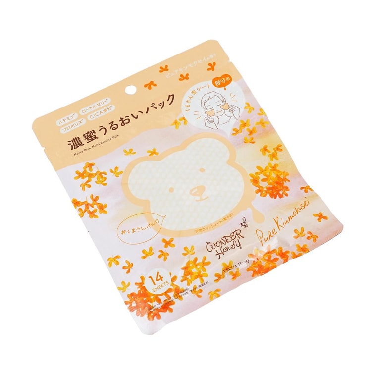 日本BCL VECUA Honey濃蜜保濕敷棉片 14片裝 密集補水 舒緩修護 小熊形狀棉片【金木犀桂花香限定】