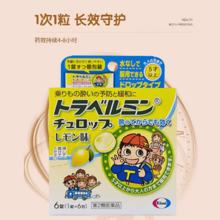 【日本直郵】日本 衛材 Eisai 兒童暈車藥 防暈車暈船噁心嘔吐頭痛 檸檬味 6粒