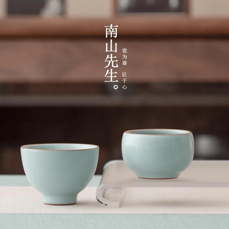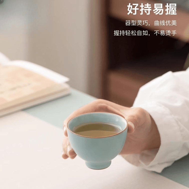 【中國直郵】 南山先生 空青汝窯茶杯家用陶瓷品茗杯單喝茶杯 雞心杯 75毫升