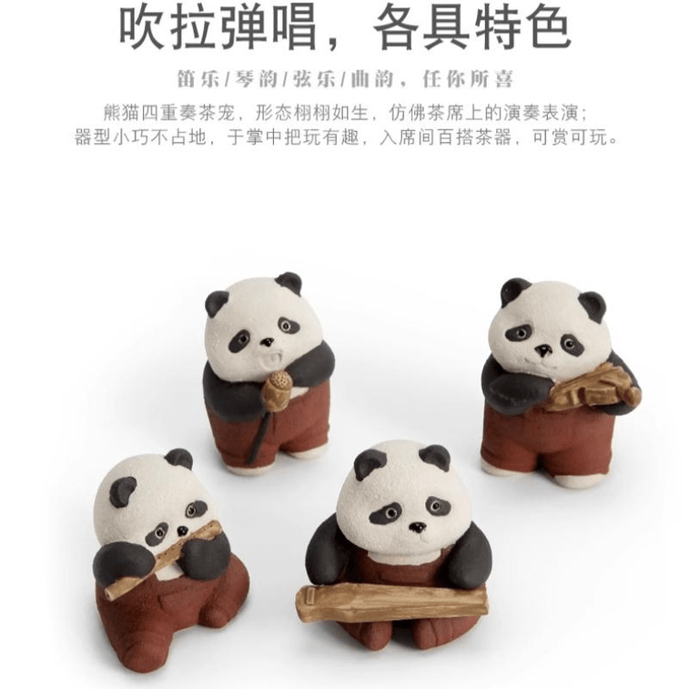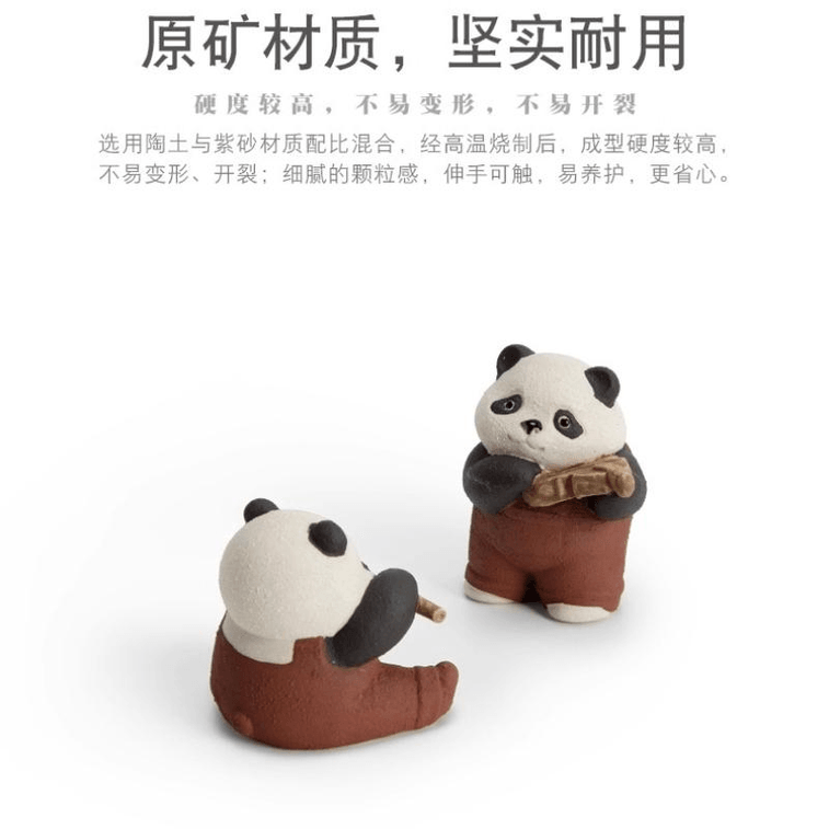 【中國直郵】 南山先生 熊貓紫砂茶寵茶玩可愛高檔手工擺件茶具 弦樂 8.2*6.9cm
