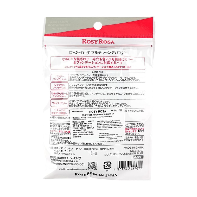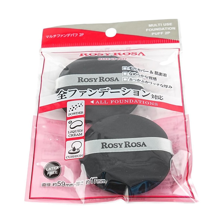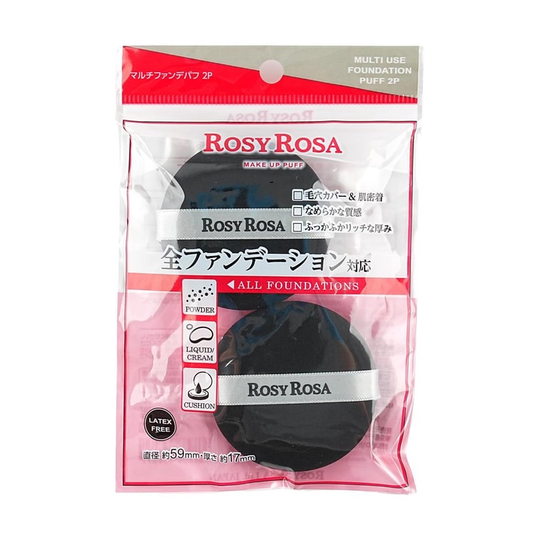 日本ROSYROSA 乾濕兩用黑粉撲 上妝全面覆蓋 高密度 厚實 2片入