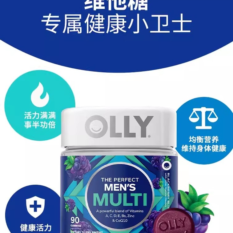 【中國直郵】OLLY 複合維他命男士輔酶Q10生物素礦物質軟糖VC 90粒