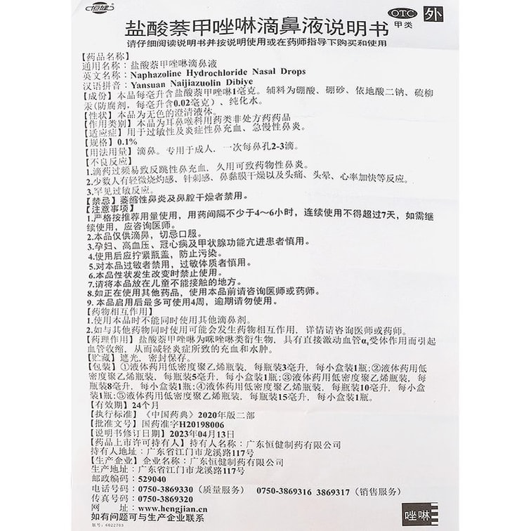 | 使用方法 | 滴鼻。專用於成人,一次每鼻孔2-3滴。 |