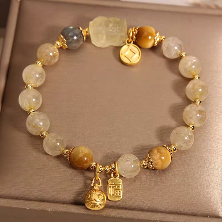 【財源滾滾】天然金髮晶月光石手鍊 女吞金獸手串 8mm 情人節送禮佳選
