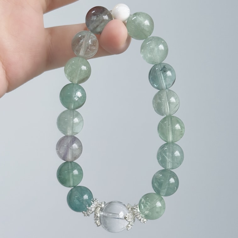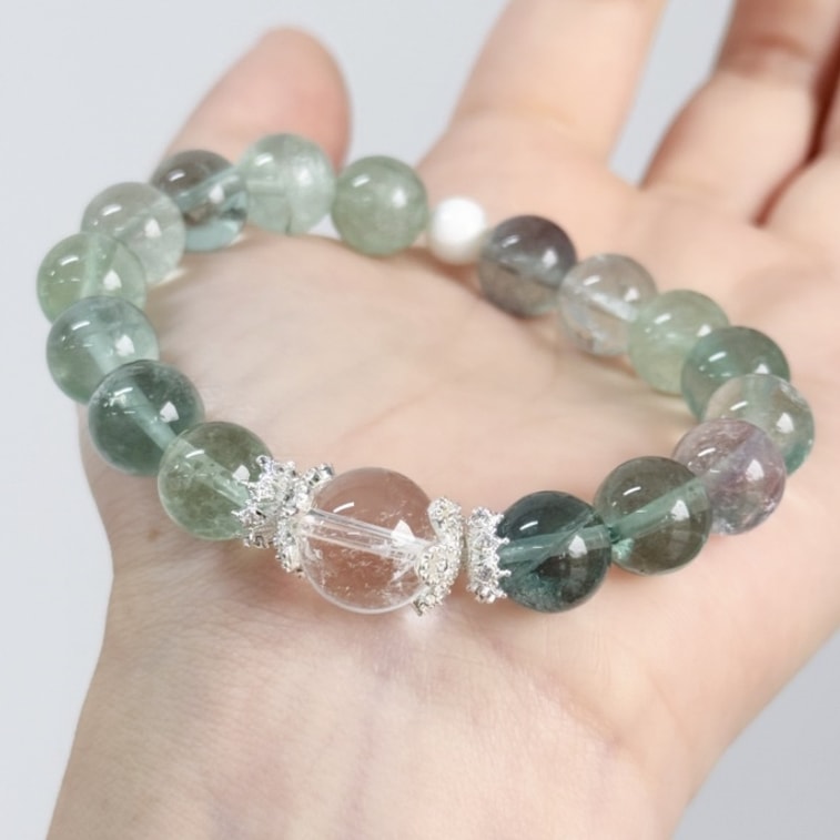 【青雲直上】綠野仙蹤 天然綠螢石白水晶手鍊 | 貝珠疊戴仙女款 | 能量療癒手串 |小眾設計10mm 情人節送禮佳選
