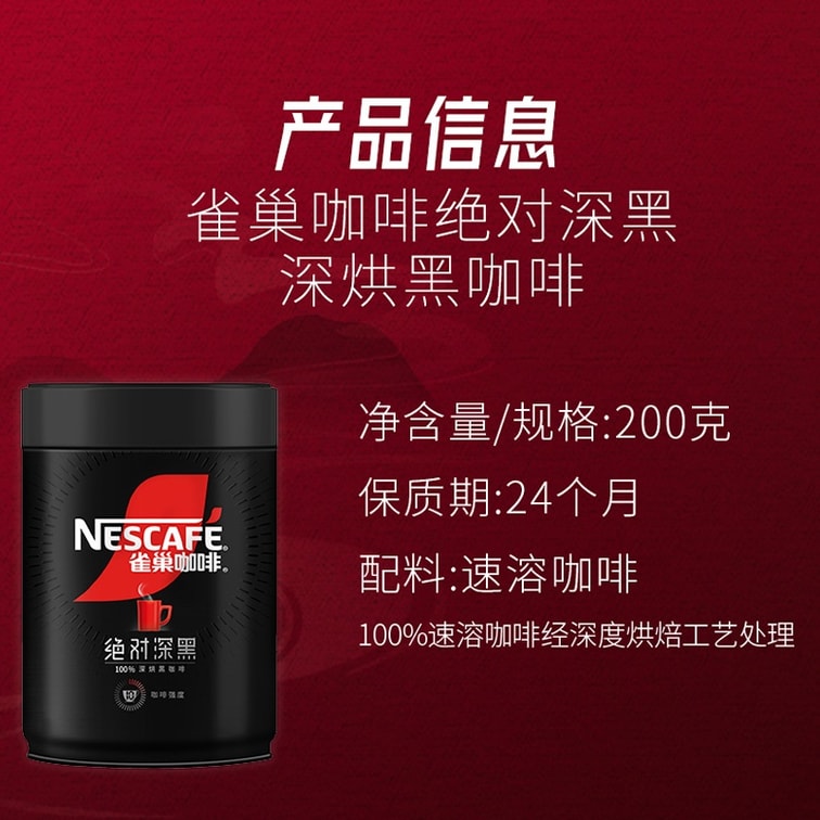 【中國直郵】 雀巢中國 雀巢絕對深黑速溶黑咖啡 200g 大罐裝 0 糖 0 脂深烘美式提神咖啡粉