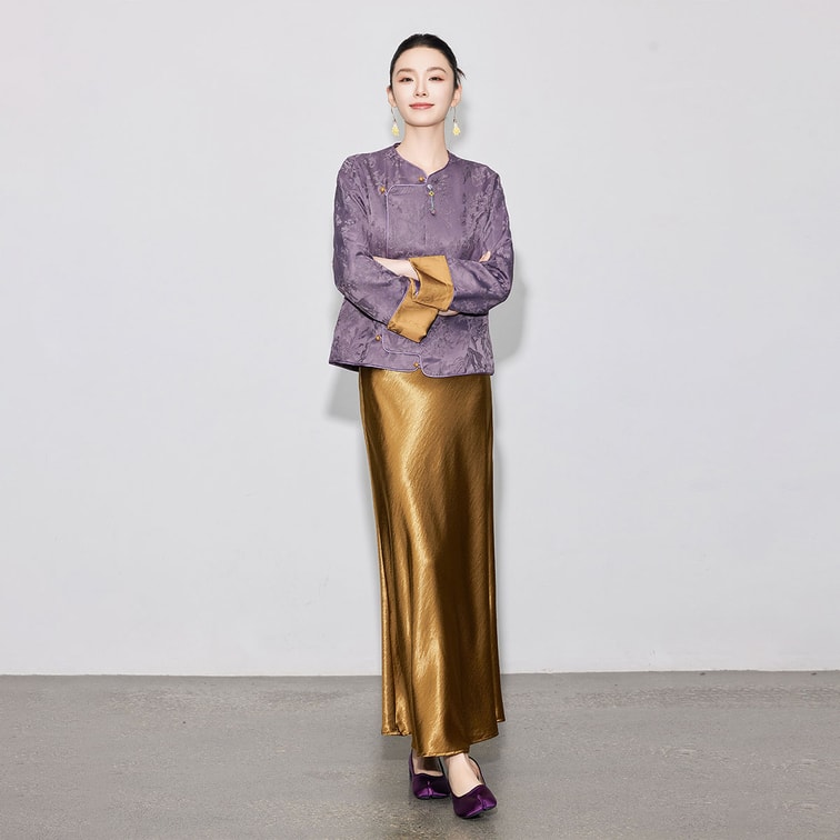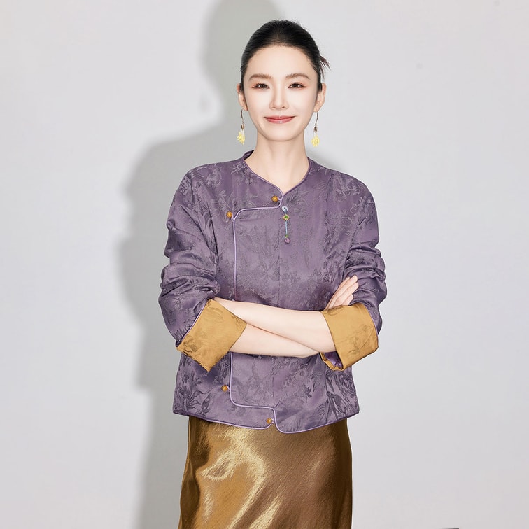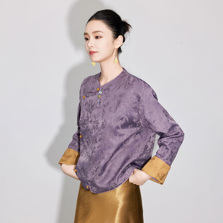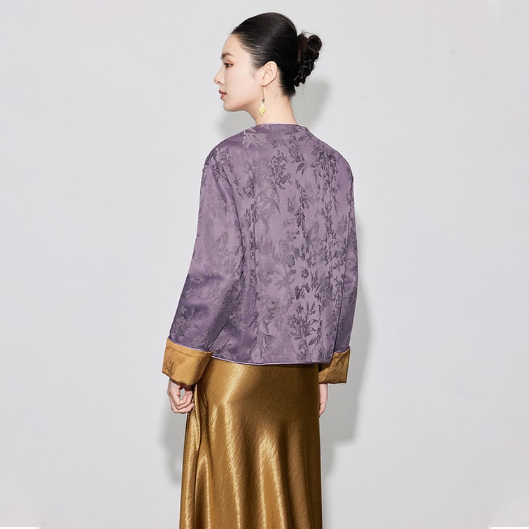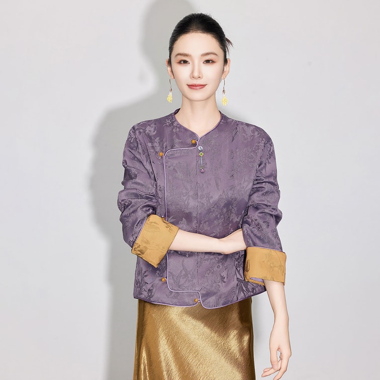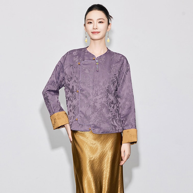 【中國直郵】 HSPM 全新中式提花吊墜長袖外套 國風圓領盤扣上衣 紫色提花外套 M