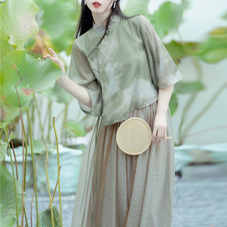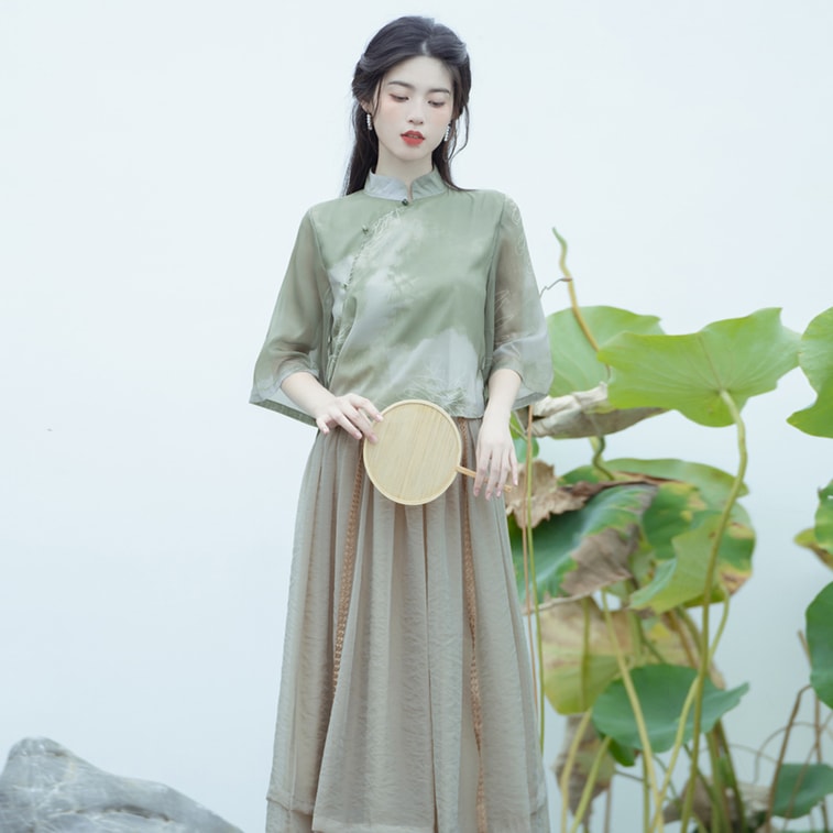 【中國直郵】 HSPM 新款新中式氣質國風改良禪意兩件套裝 禪意國風兩件套 S
