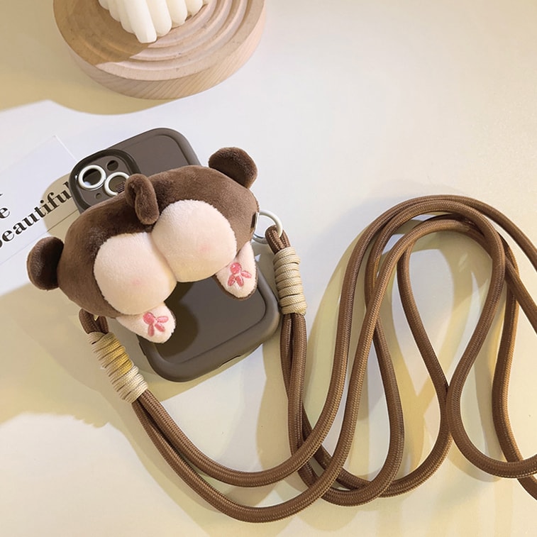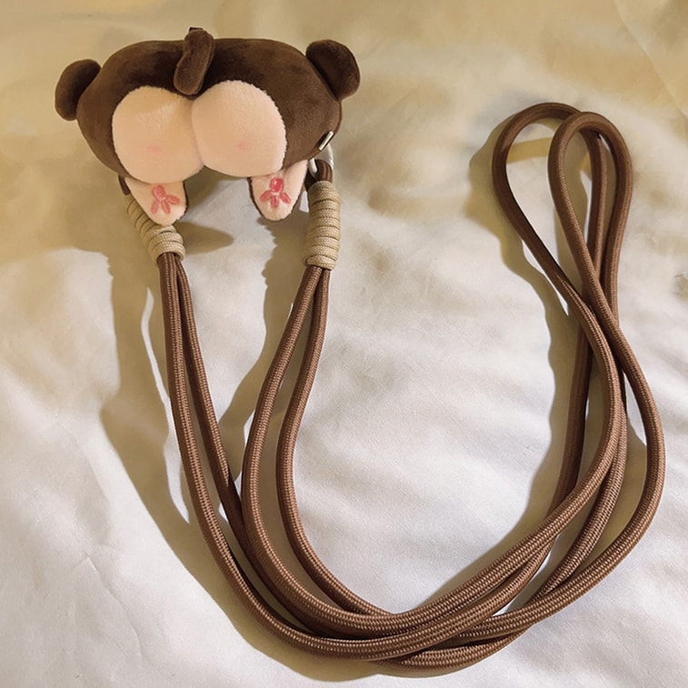 HSPM 全新可愛創意公仔屁屁手機背夾斜跨手機鏈加長繩通用手機殼diy手工編織小猴屁屁公仔背夾+棕色長繩 F