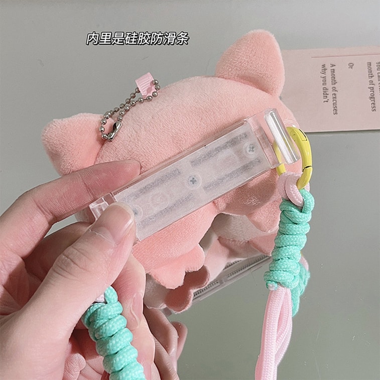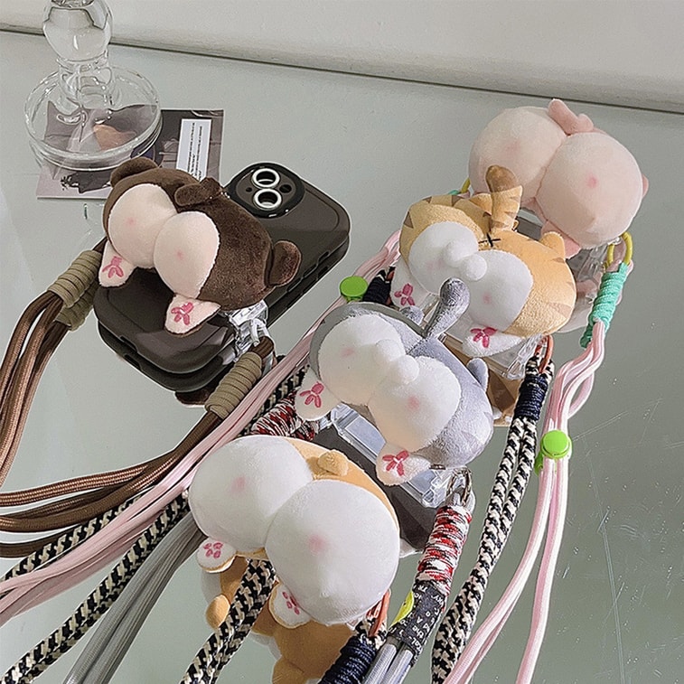 HSPM 全新可愛創意公仔屁屁手機背夾斜跨手機鏈加長繩通用手機殼diy手工編織 小豬屁屁公仔背夾+粉紅色長繩 F