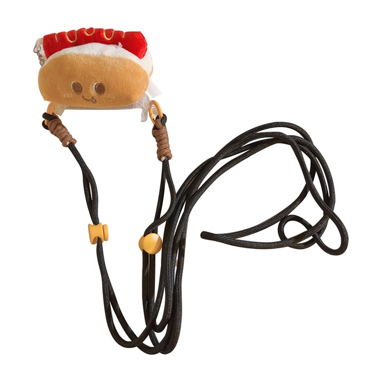 HSPM 全新可愛創意公仔手機背夾斜跨手機鏈加長繩通用手機殼diy手工編織 香腸包公仔背夾+深棕色長繩 F