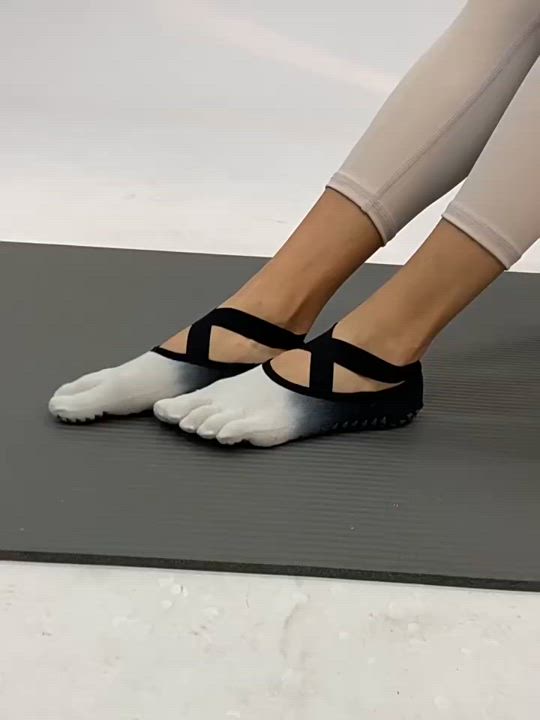 HSPM 全新漸層綁帶防滑五指運動瑜珈襪 運動健身舞蹈普拉提專用襪 白紫 M