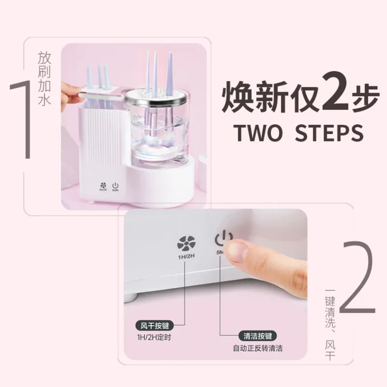Electric Makeup Brush Cleaning and Drying Machine, Automatic Dryer for Beauty Brushes [Includes 2 Bottles of Cleaning Solution]