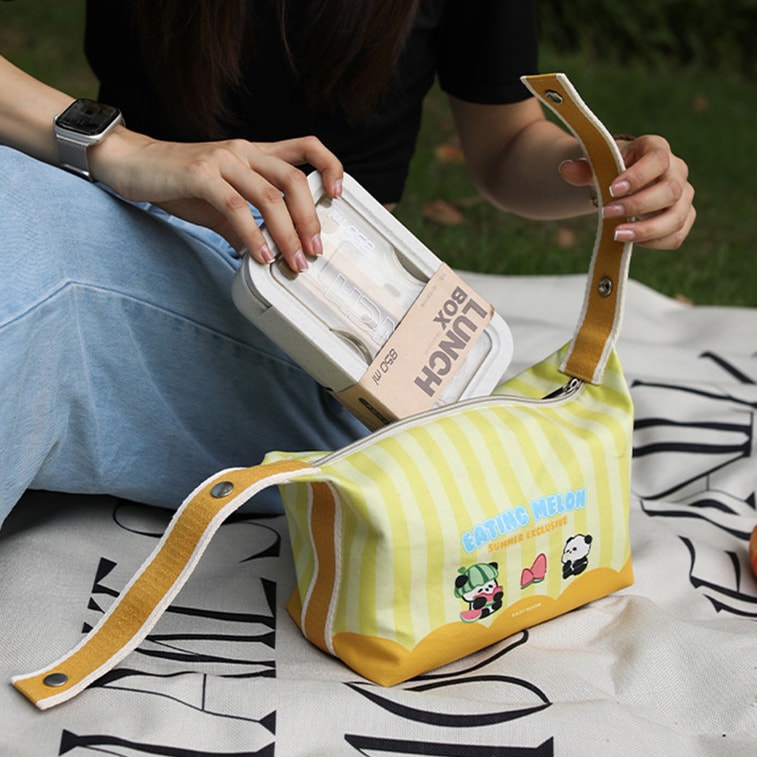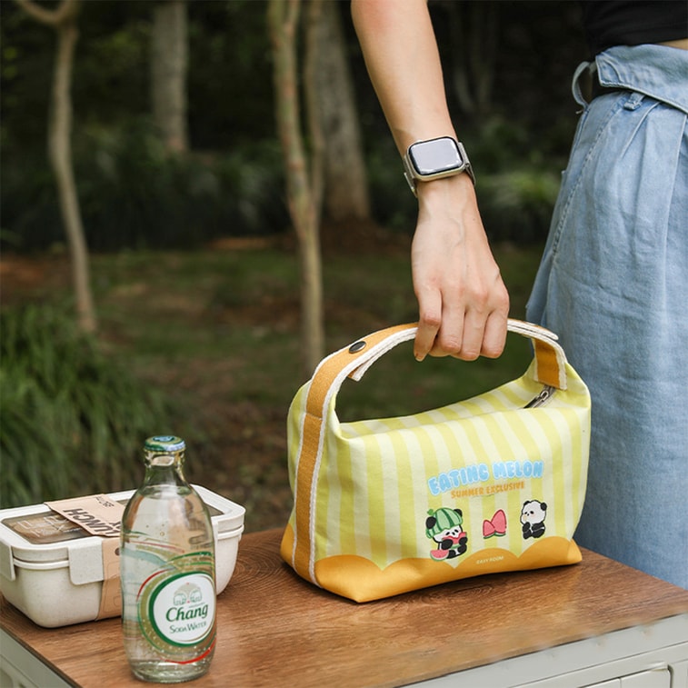 New Insulated Bento Bag Eating Melon Panda Ring Handheld Technology Clamp Cotton Thick Coated Silver Insulated Bag F