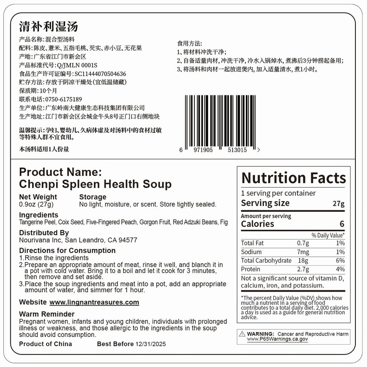 嶺南臻寶 清補利濕湯 陳皮 養生 清補涼 方便 人氣 禮 27g
