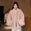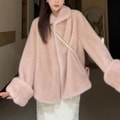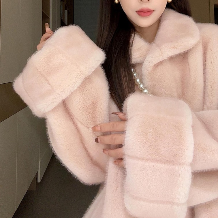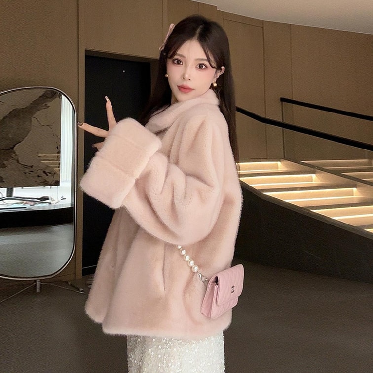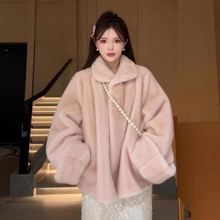 【中國直郵】 HSPM 新款加厚短版方領南瓜挽袖中古仿水貂毛絨外套 粉紅色 M