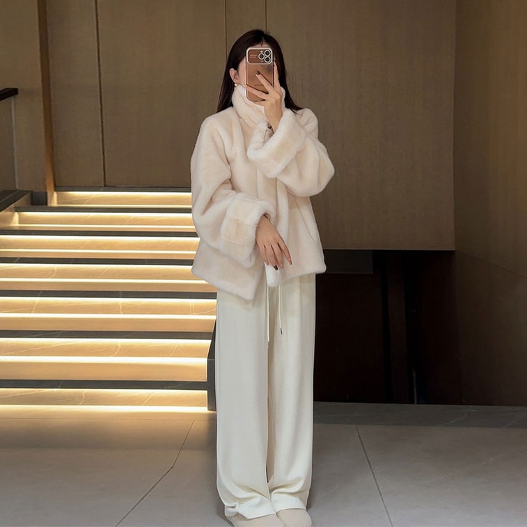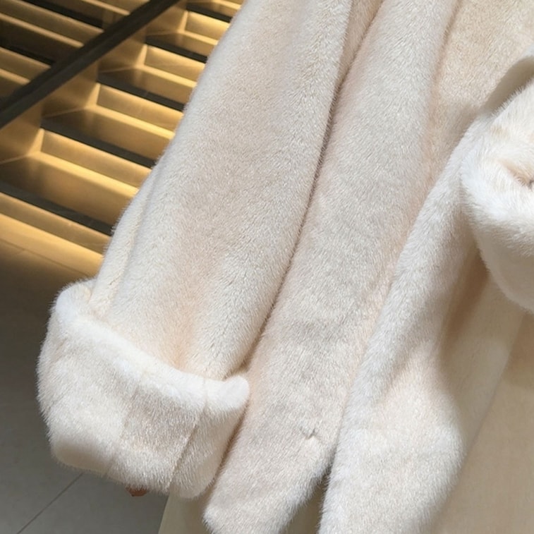 【中國直郵】 HSPM 新款加厚短版方領南瓜挽袖中古仿水貂毛絨外套 米白色 M