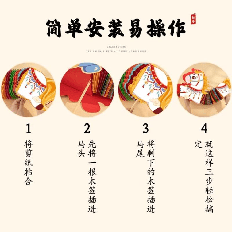 【中國直郵】 優禾的家 新年氛圍佈置裝飾兒童拍照道具跨年迎新馬年玩具平安喜樂小號0.8m*1個