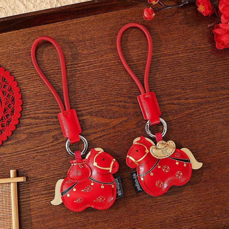 【中國直郵】 HSPM 新年款馬上有錢皮革鑰匙圈掛飾汽車包包鑰匙鏈掛飾 皮革小馬掛件-馬上有福款 1個