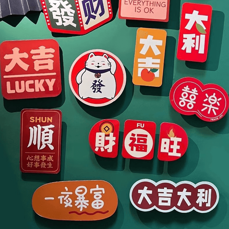 文字創意冰箱貼紙 磁吸裝飾 大吉大利套裝 11枚