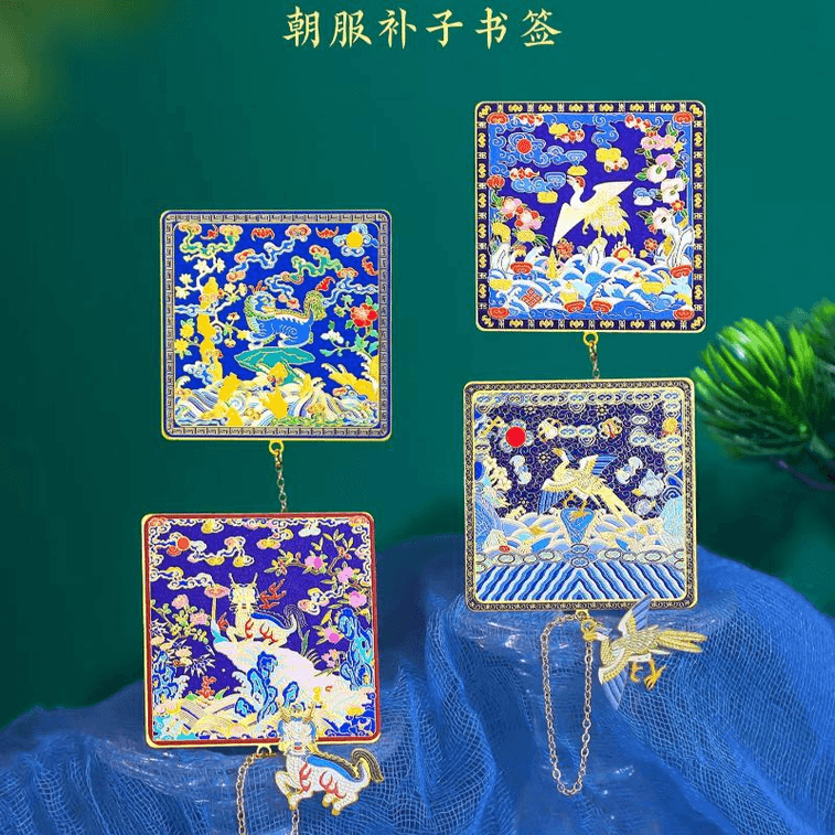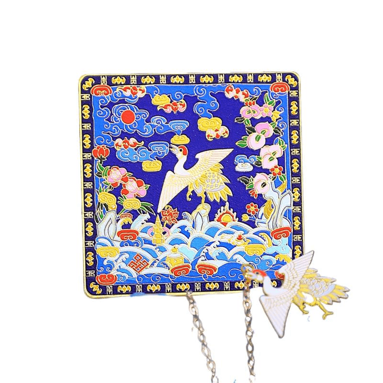 故宮淘寶 上新了故宮 朝服補子書籤國風文具旅遊金屬 朝霞鶴影金屬書籤 55*55mm