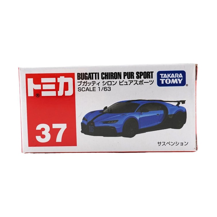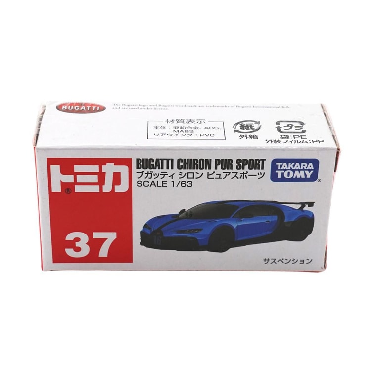 日本TOMICA多美卡 合金小汽車模型 玩具車模擬汽車 No.37 布加迪 Chiron Pure Sport