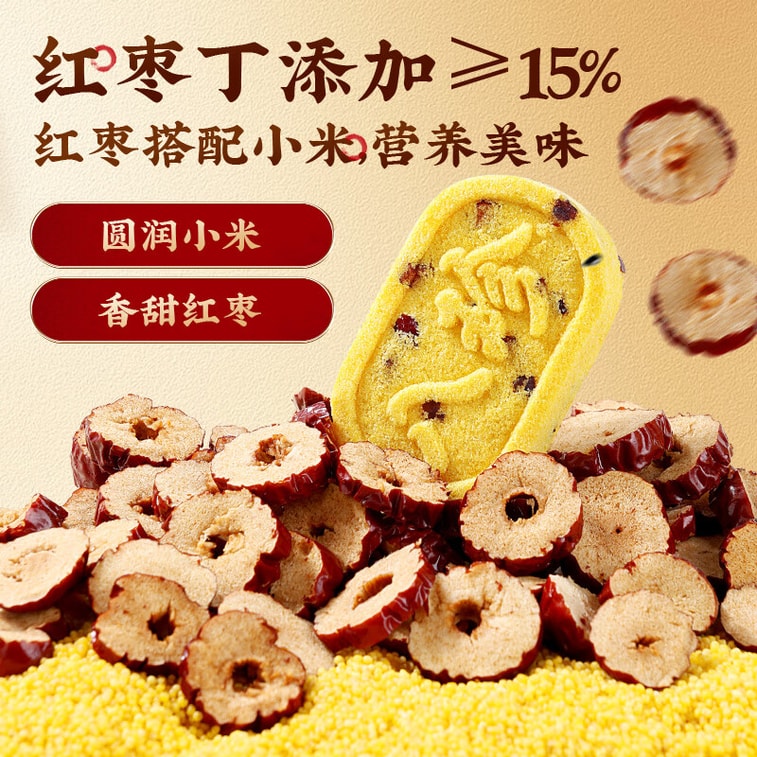 【中國直郵】 百草味 小米紅棗八珍糕【0 蔗糖】芡實山藥傳統中式糕點 營養早餐休閒零食 500g | 亞米