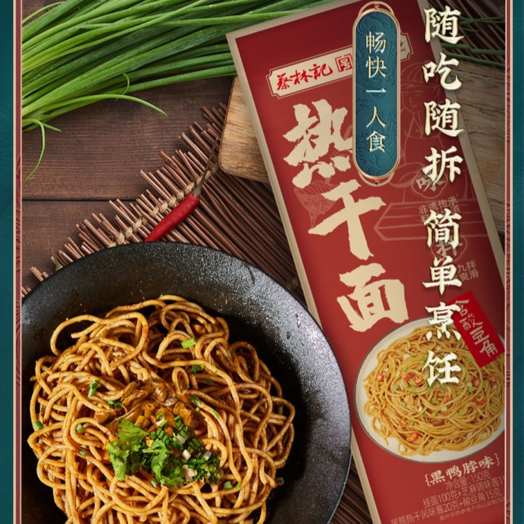 【中國直郵】 蔡林記 武漢熱乾麵 黑鴨風味 地道武漢特產 含醬包小菜 鹼水面 掛麵 速食乾拌麵 湖北特產方便麵【香辣甜麻 回味無窮 辣嘴爽心】 150g 袋 | 亞米