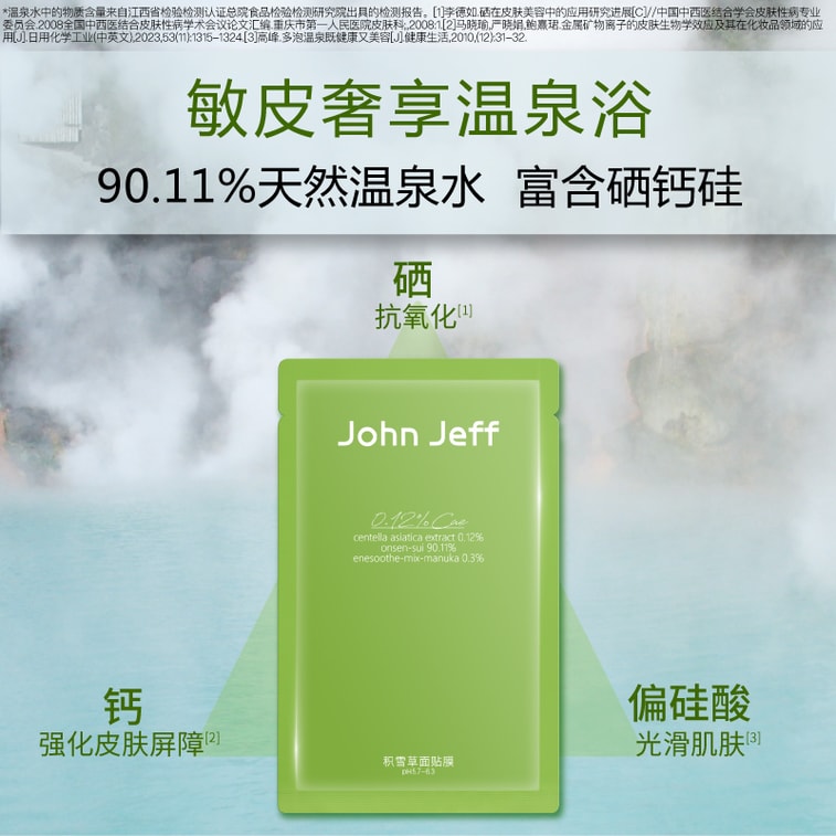 3重舒緩退紅:積雪草萃取物,鬆紅梅複合精萃,溫泉水