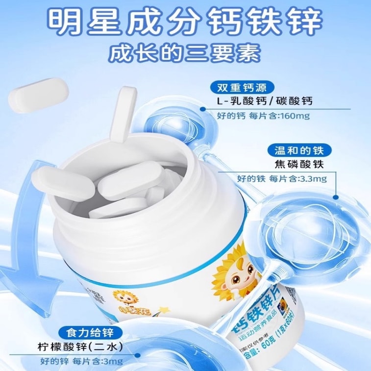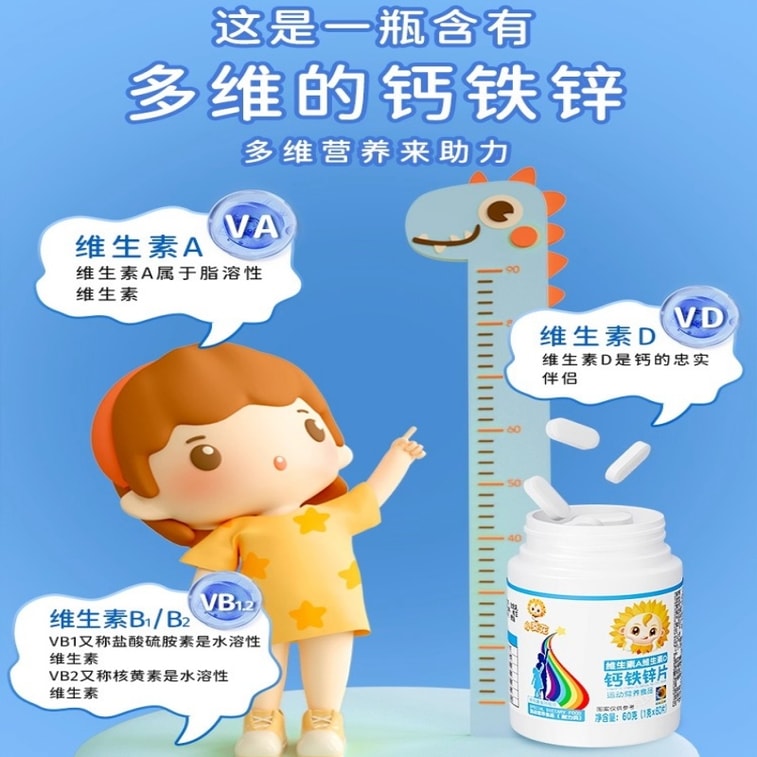 【中國直郵】 葵花藥業 小葵花兒童鈣鐵鋅片60g 助長高 專為挑食兒童 維生素AD營養補充 | 亞米