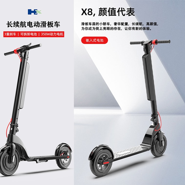 First-rate 電動滑板車X8可折疊 上學上班代步車 經典續航約30-45km 10吋 350W 36V 10A 大輪胎防爆減震 鋁合金鋰電池 UN38.3 MSDS安全認證 黑色 下架 | 亞米