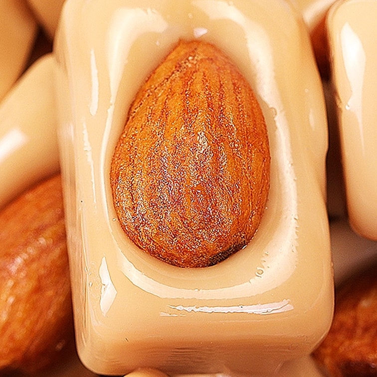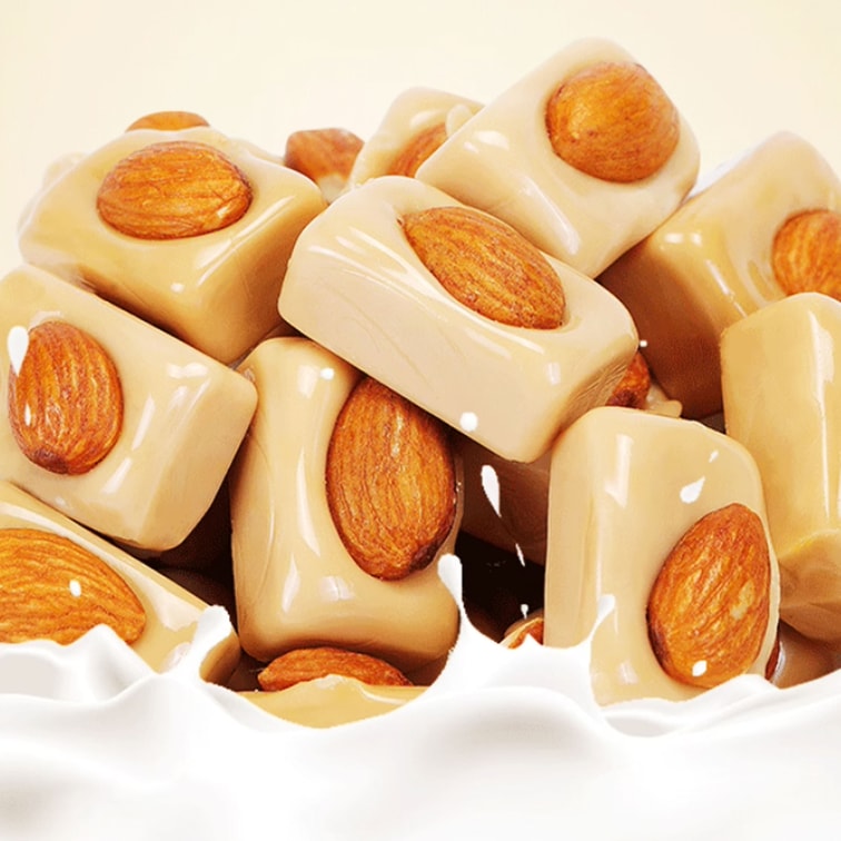 白砂糖、葡萄糖漿、氫化植物油、扁桃仁、奶油、煉乳,食品添加物(磷脂質、蔗醣脂肪酸酯、阿拉伯膠)、食用鹽、食用香料