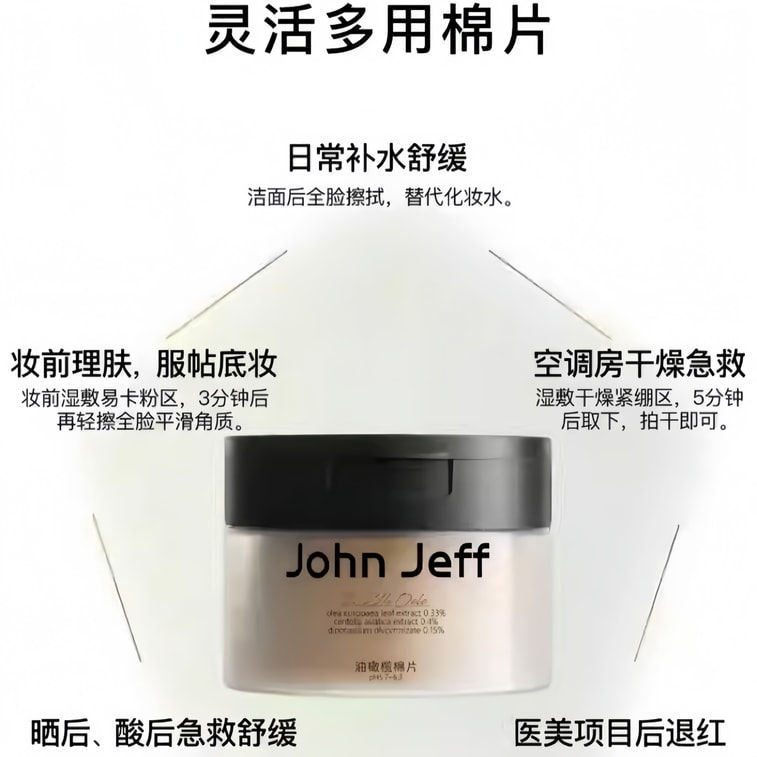 【中國直郵】 John Jeff 油橄欖棉片舒緩補水妝前平滑肌膚90片150g*1盒