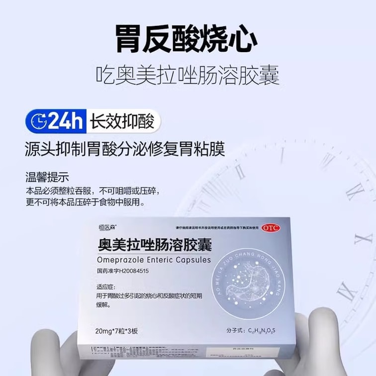 【中國直郵】 恆醫森 奧美拉唑腸溶膠囊 胃藥腸胃炎胃酸過多反酸燒心胃痛幽門螺旋挫 21粒/盒