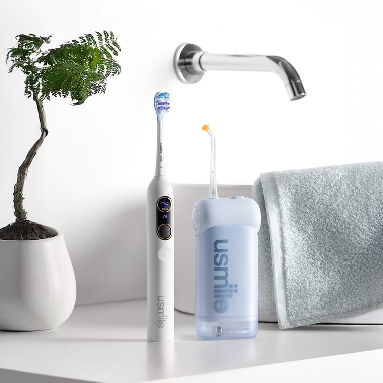 【美國直效郵件】 USMILE 口腔護理組 Y10pro白色電動牙刷 1支 + C10藍色沖牙器 1台