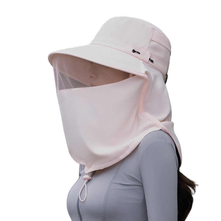 【中國直郵】 HSPM 戶外冰絲防蚊帽釣魚帽遮臉防曬透氣網紗面罩養蜂帽 粉紅色F 1個 | 亞米