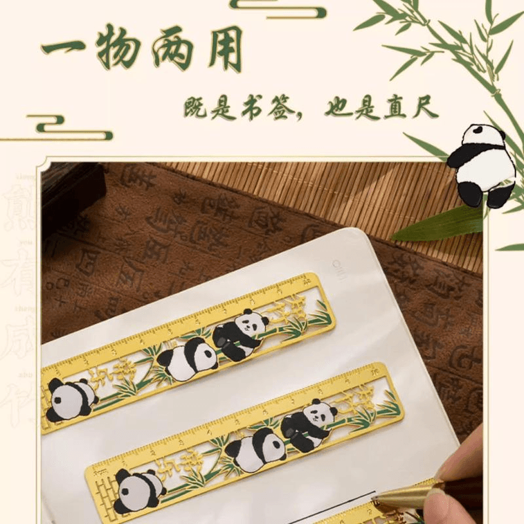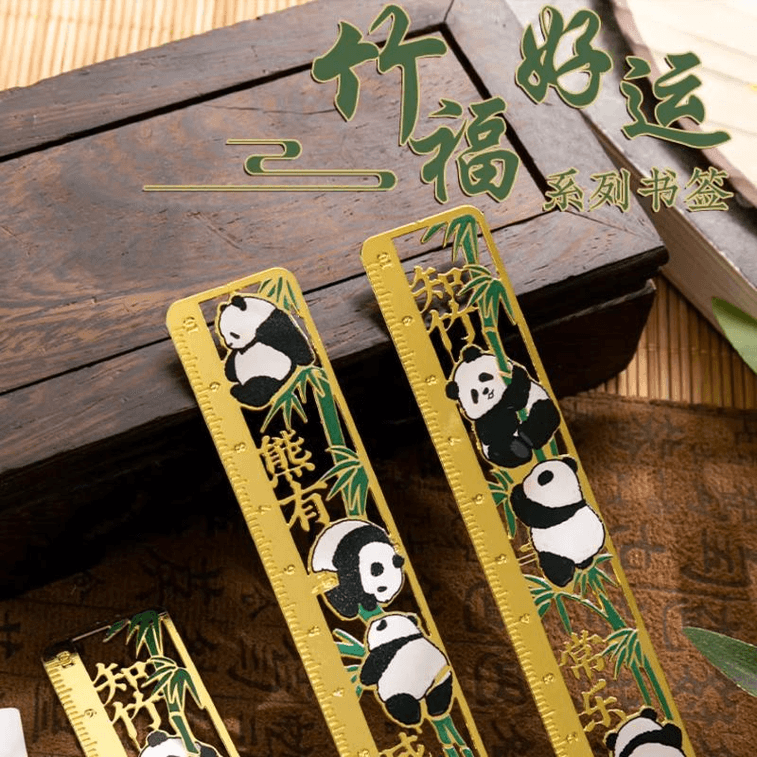 【中國直郵】 儒邑文創 熊貓金屬書籤高級書籤送老外禮品 好運蓮蓮 22*108mm