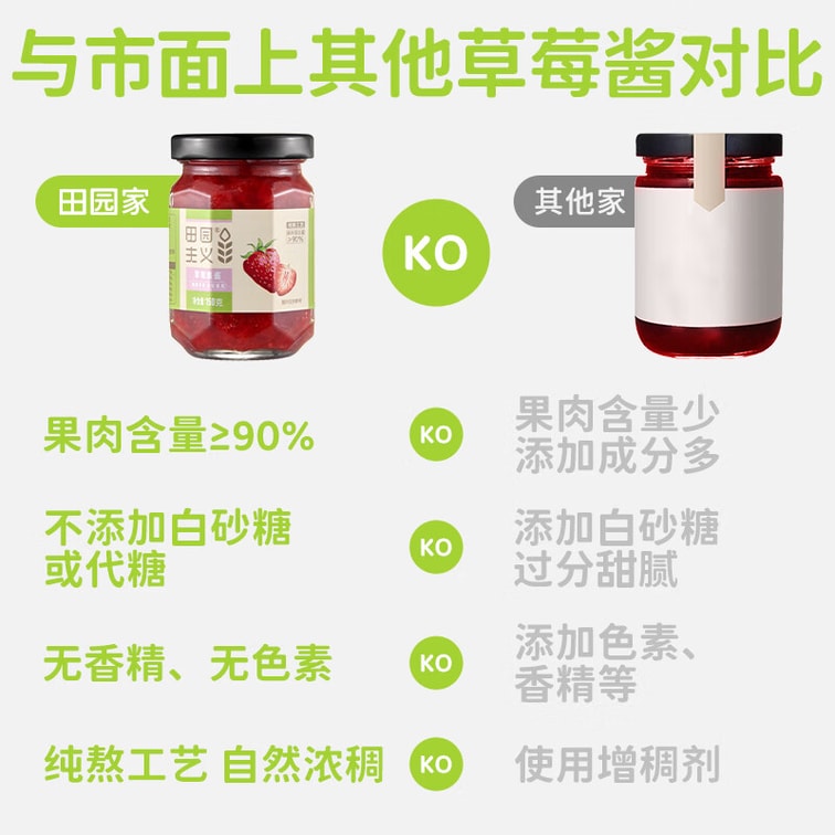 【中國直郵】 田園主義 純熬草莓醬果醬寶寶兒童幼兒0脂無添加塗抹麵包90%果肉早餐150g