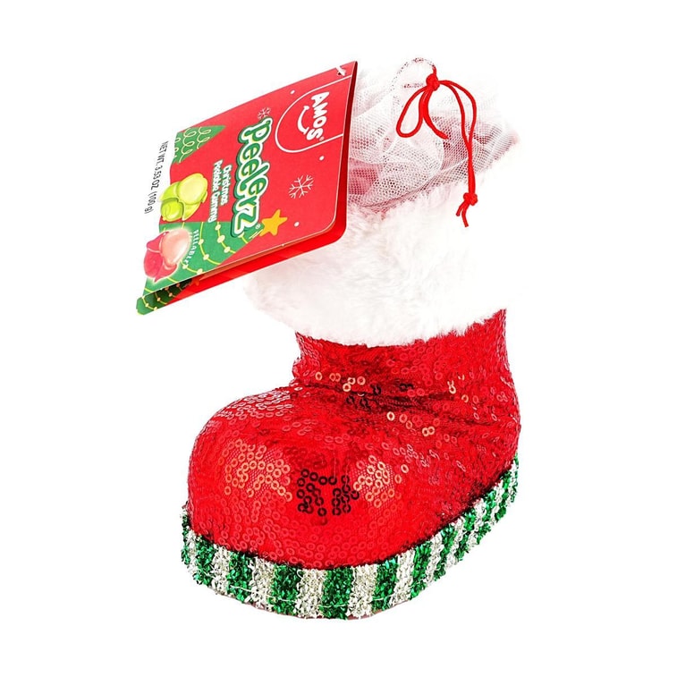 AMOS阿麥斯 聖誕靴子造型剝皮軟糖 青蘋果+樹莓口味 1只 100g *3【3份超值裝】【聖誕裝飾糖果禮盒】