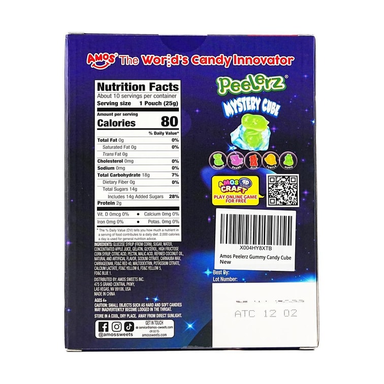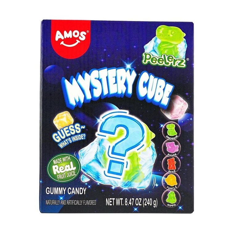 AMOS阿麥斯 4D神秘魔術方塊冰封糖果盲盒 剝皮軟糖 240g【5款3D小動物造型】【真實果汁添加】