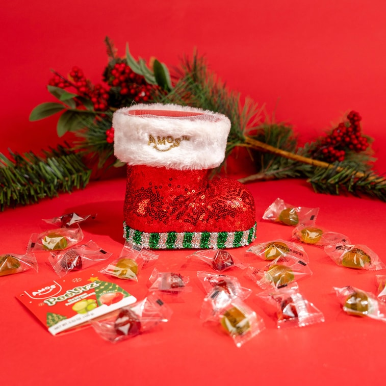 AMOS阿麥斯 聖誕靴子造型剝皮軟糖 青蘋果+樹莓口味 1只 100g【聖誕裝飾糖果禮盒】